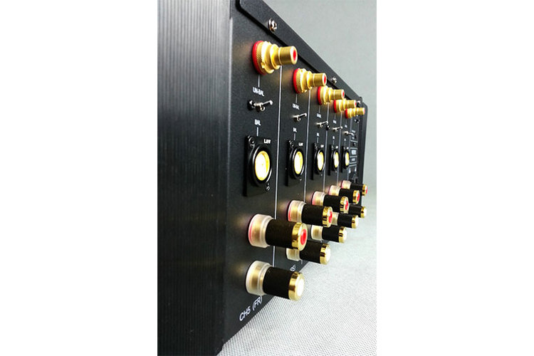 (1)輸入問題。信號輸入是個令人苦惱問題,如果你係統前端是高素質的機器,用普通信號作輸入那可能增加內阻,大大損失很多細節了;為什麽聲音發悶?象隔層沙窗看東西?都與它有部分關係。為了解決這個問題,工程師團隊找到的一家專做出口的高端音響 精密數控加工廠根據MOJO SDHD5250SE的聲音特性定製了一批進口磷銅導體用於生產RCA非平衡、XRL平衡專用信號座,加強多層24k鍍真金,完美傳遞前級聲頻信號。功放接線端子使用無磁性日本鍍金磷青銅導體主體,低溫熔鑄黃銅端外殼(覆黑啞光)可承受60A大電流、瞬 間250安。同時也解決了‘連接端子品質影響到聲音的質量問題’。