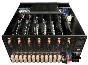 真正的發燒友級功率放大器高效,“軟交換”H級™ 設計3.3 kVA環形電源7 x 350瓦@8歐姆對流冷卻;沒有粉絲在4歐姆負載下完全穩定平衡(卡儂)和非平衡(RCA)輸入親聽級輸入輸出端子觸發器輸入/輸出可機架安裝5年保修尺寸:17“(寬