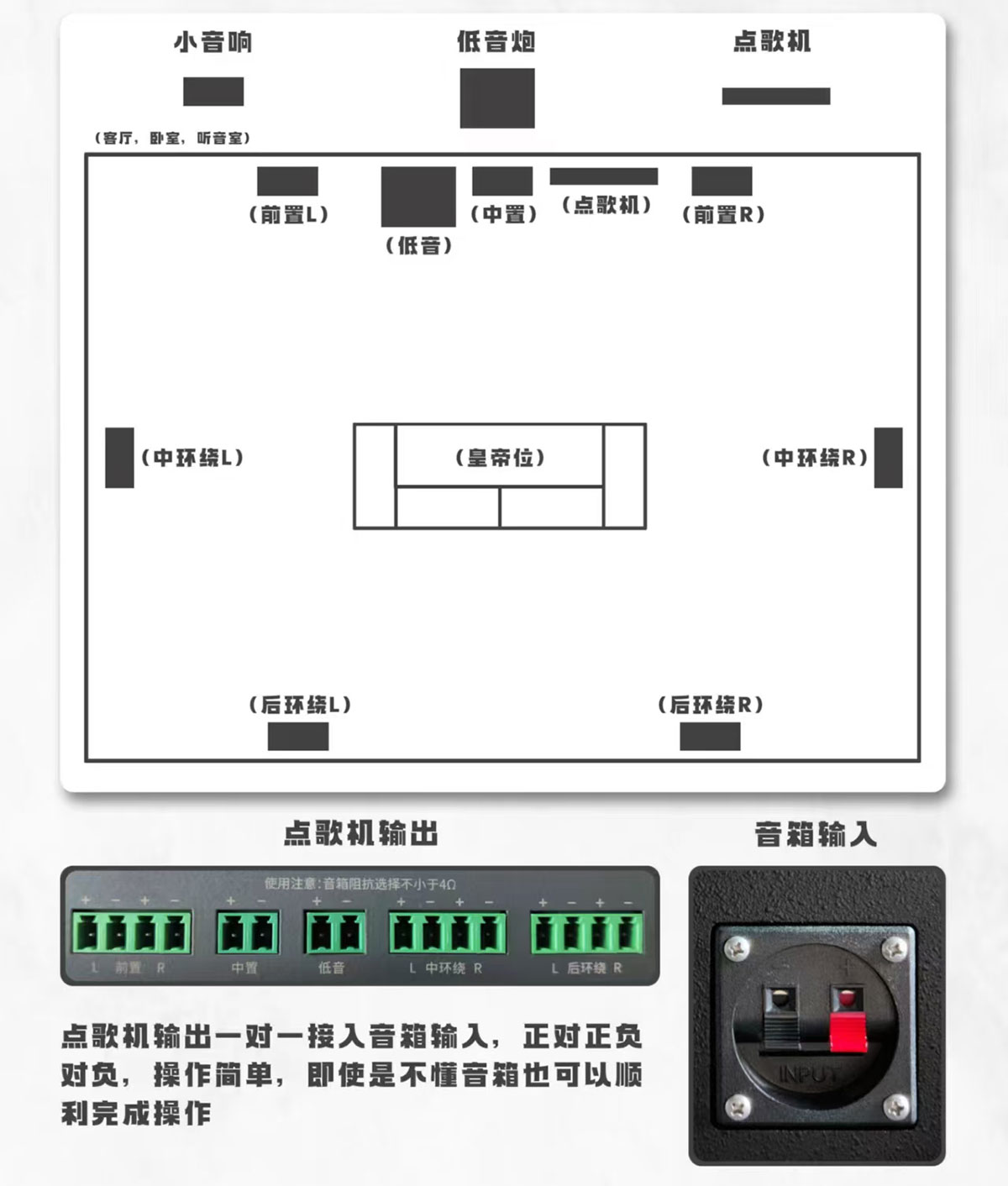 將電影係統,K歌係統,效果器,話筒管理係統,數字處理器,數字,功放電源係統,專用音箱設備等係統集成於一體的機器。