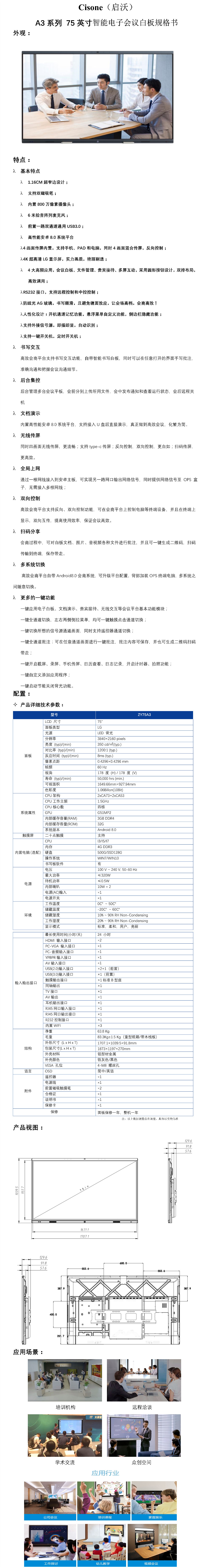Cisone(啟沃) A3係列 75英寸午夜性影院電子午夜福利视频观看白板